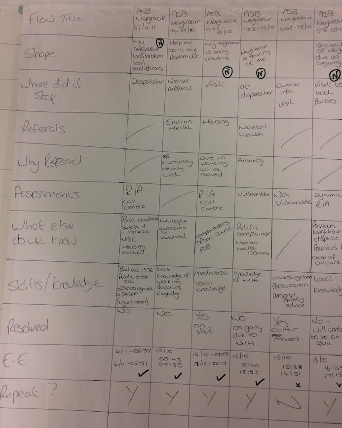 - listen to the demands coming in. The team did this themselves, and after two days they recorded down what they had found from the forms coming in, listening to phone calls, and listening to people coming in.