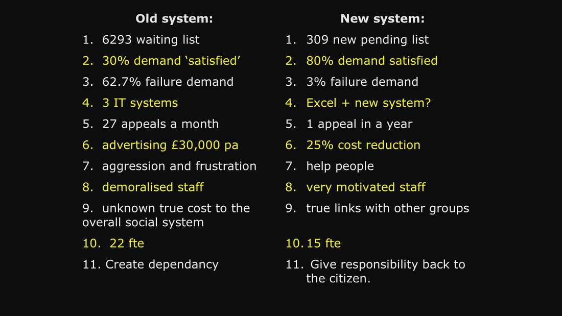 The outcome was a completely new way of working. Gone were the forms, and the computer workflow system. Gone was the website. Everyone who enquired got the attention of a member of staff, and their demand reduced!